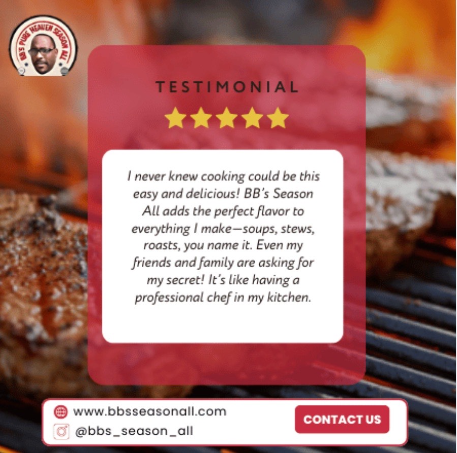 “Your support isn’t just appreciated—it’s the heart of everything I do. From my kitchen to yours, thank you for welcoming BB’s Season All into your home and letting me season your life with flavor.”